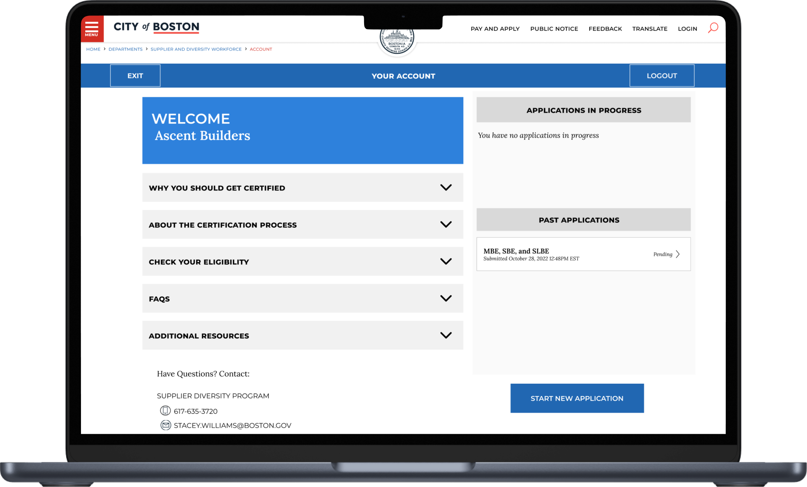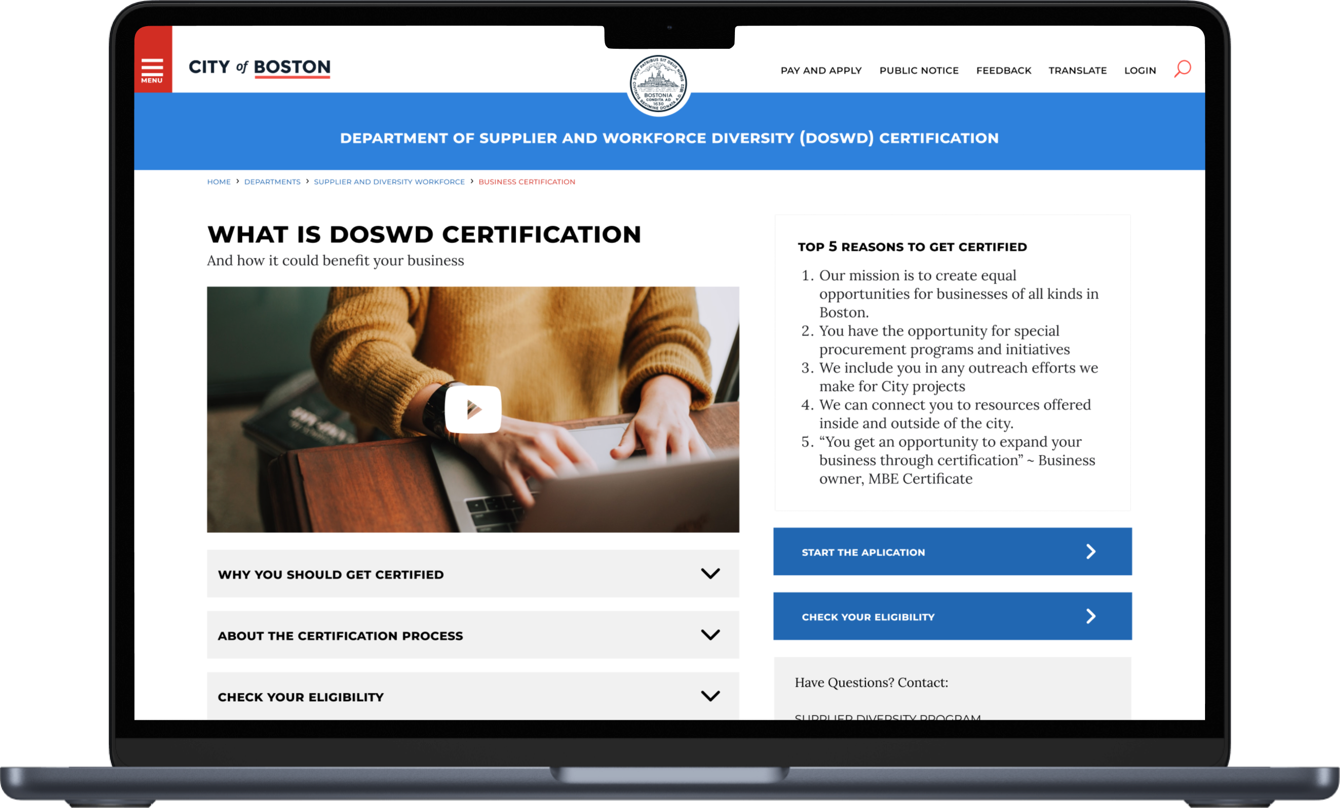 The City of Boston’s Department of Supplier and Workforce Diversity (DOSWD) recently transitioned from a paper form to an online form. Certification is essential for ensuring equitable funding opportunities for marginalized enterprises in Boston, the program has not been utilized to its full capacity.