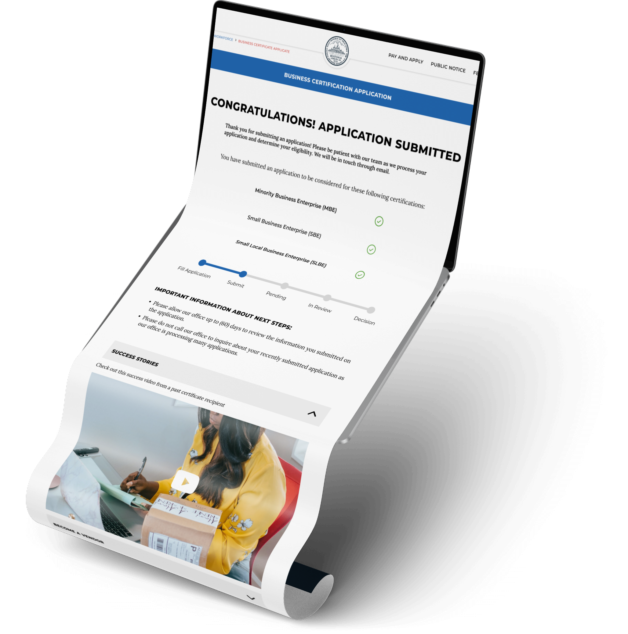 We include success stories at the end of the application to reiterate the value of the certification and to acknowledge the user’s effort.